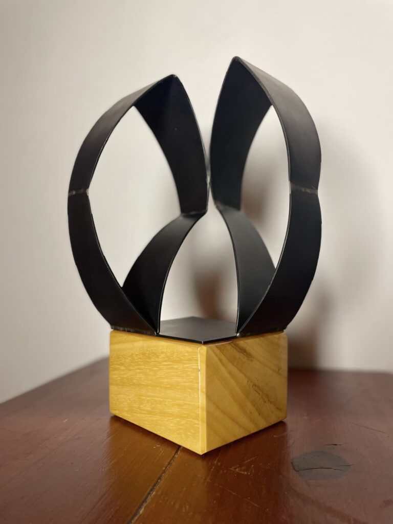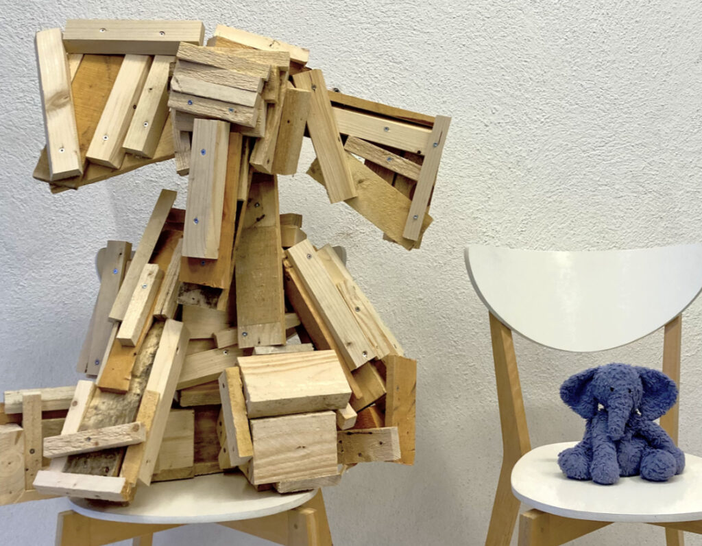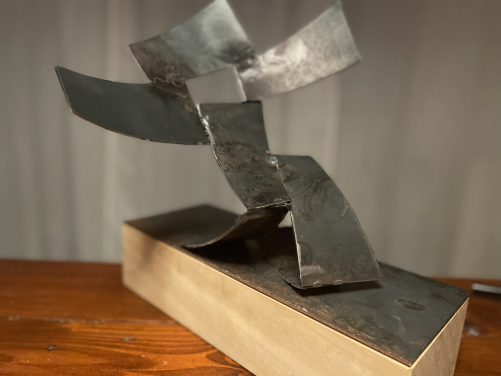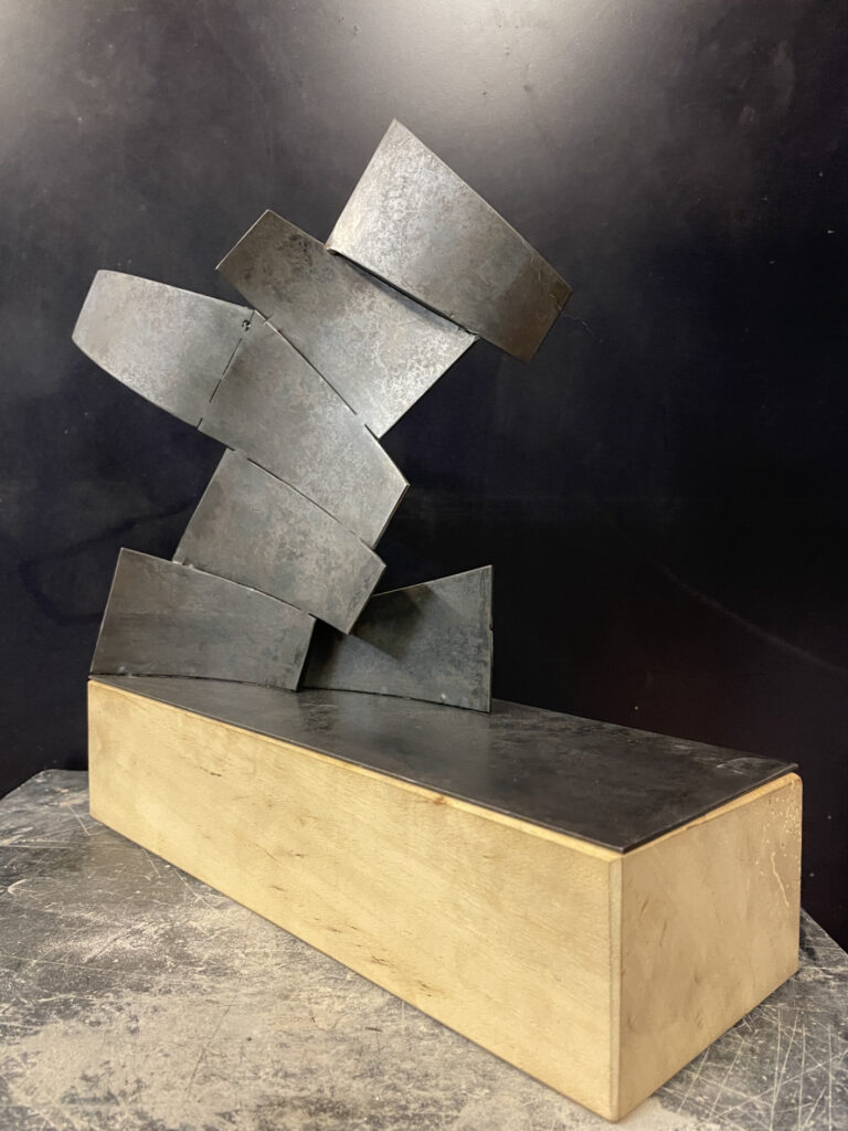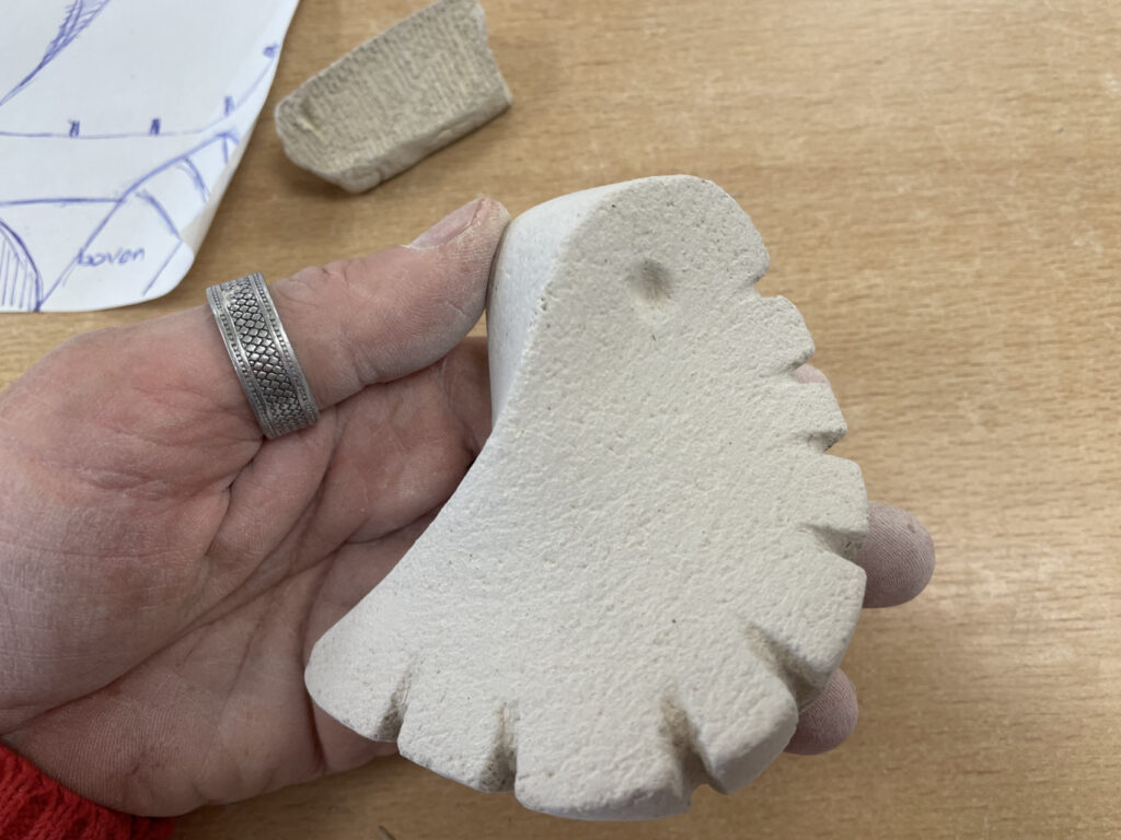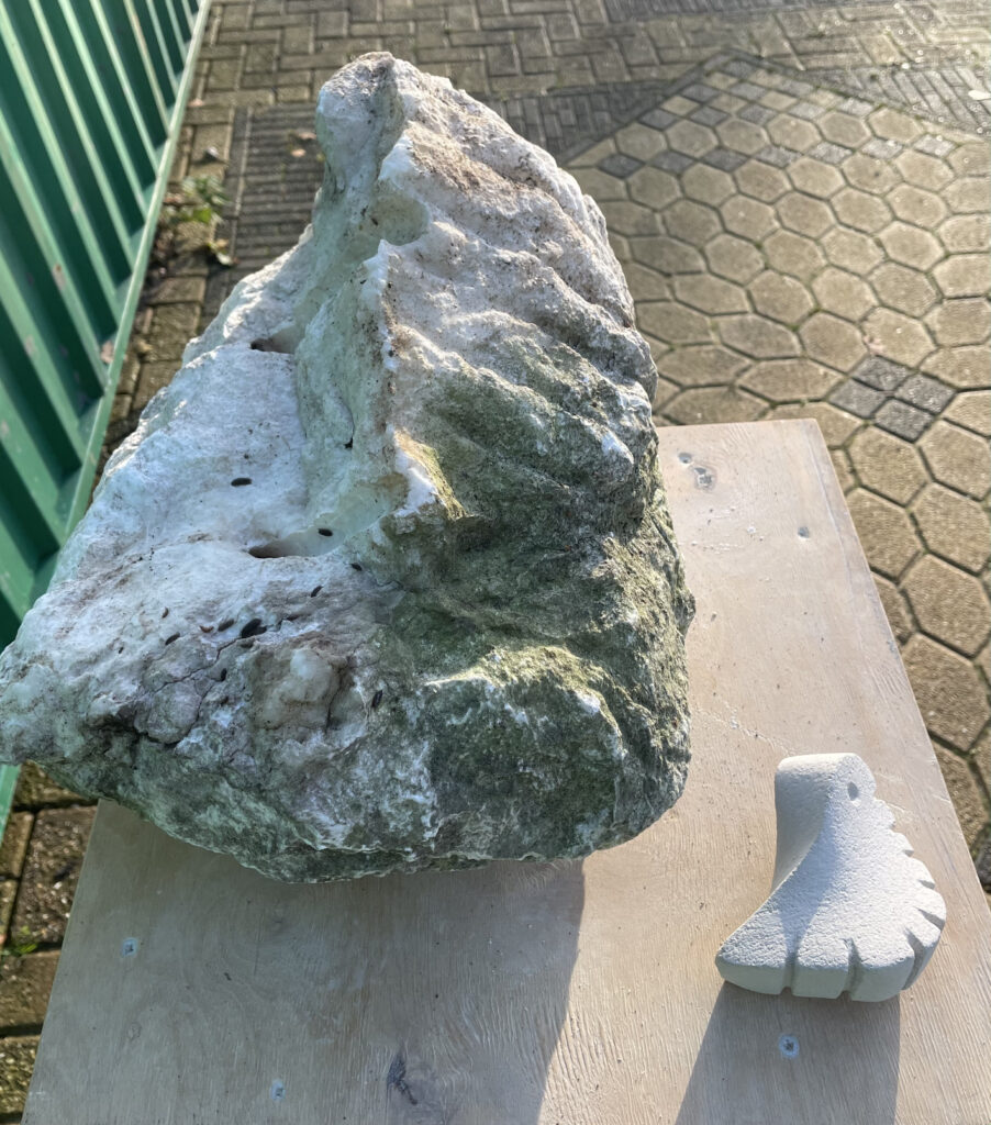 Work in progress. De albasten steen ligt klaar om de vorm van het beest eruit te hakken.Beest. Kleien vorm die beweging verbeeld. Voorstudie voor een beeldhouwwerk uit albast.Walnoot uit mergel. Oefening voor beeldhouwen in Albast‘De Risper’. Deze oogster haalt binnen wat er is gezaaid en vormt een tweetal samen met de zaaier. Als je niet zaait zal je ook niet oogsten.‘De Sjidder’. Deze zaaier is gemaakt van 7 identieke stalen elementen op een sokkel van lindenhout. 30x10x30 cm. Voorzien van zwarte patina. Het staat symbool voor hetgeen wat je zaait in je leven. En of dat ook een oogst oplevert. Staan beeld op lindenhouten sokkel ‘Tien voor Doet’. Afmetingen 20x20x30Vanuit een voorwerp hebben we beeldend onderzoek gedaan naar de kleur, vorm, materiaal en functie hiervan. Hieronder materiaal onderzoek. Plastic speelgoed gesmolten tot een schaal. De schaal is ondersteund door vier stevige plastic mannen.Reproductie van Slaapknuffel ‘Slurfie’ in sloophoutEen lam kruipt uit een stuk van Albast. Oefening voor beeldhouwen.‘De Vallende Vrouw’. Een bewegende bijna vallende vrouw op een wankele ondergrond verbeeld het verlies aan evenwicht en controle om te blijven staan. Ze valt…nét iet. 30x30x120 cm.Voor het vak Kunstfilosofie een expressionistische verbeelding van een kop en schotel. 50x50x60 cm